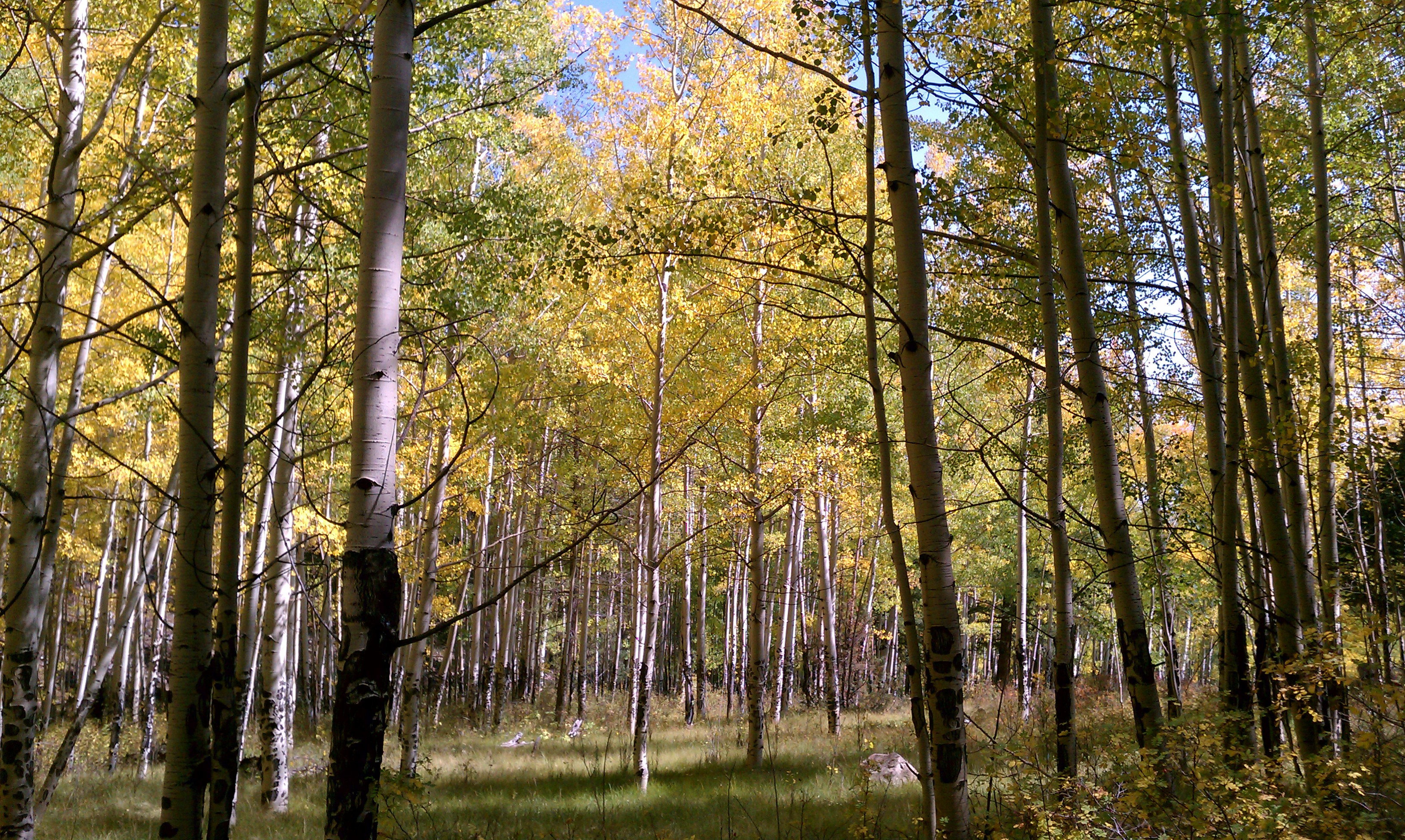 Saturday afternoon, Shanda and I joined a friendly group of Mission Hills sisters for a hike along an Aspen-lined trail through he mountains.
